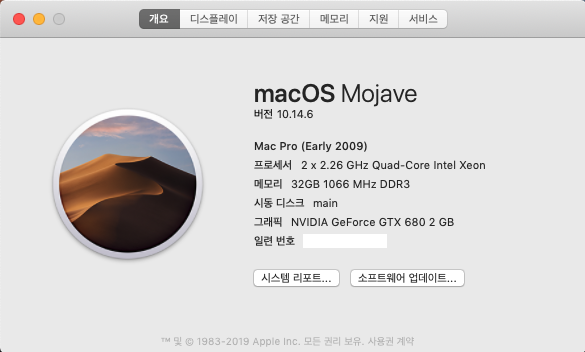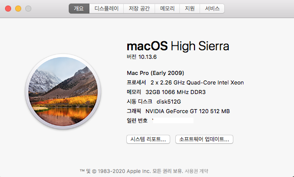 사용하는 구형맥의 OS 업그레이드 완료